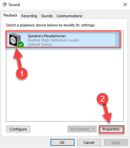 - Right-click your headphones → Properties.